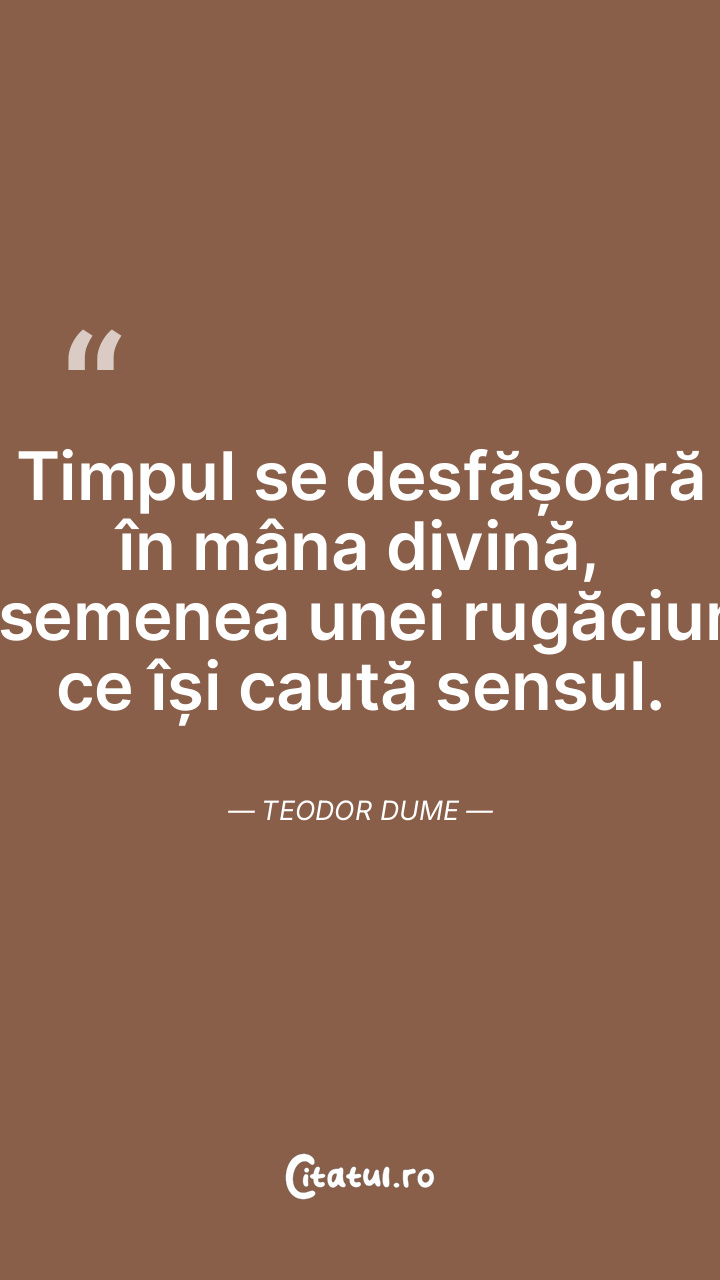 Timpul se desfășoară în mâna divină, asemenea unei rugăciuni ce își caută sensul. Teodor Dume