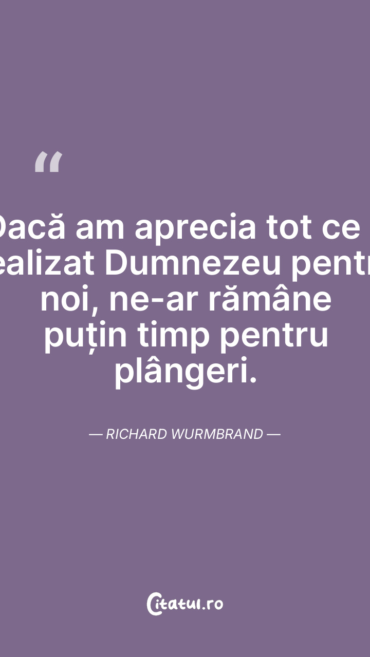 Dacă am aprecia tot ce a realizat Dumnezeu pentru noi, ne-ar rămâne puțin timp pentru plângeri. Richard Wurmbrand