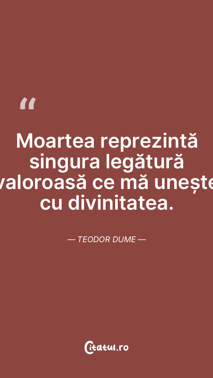 Moartea reprezintă singura legătură valoroasă ce mă unește cu divinitatea. Teodor Dume