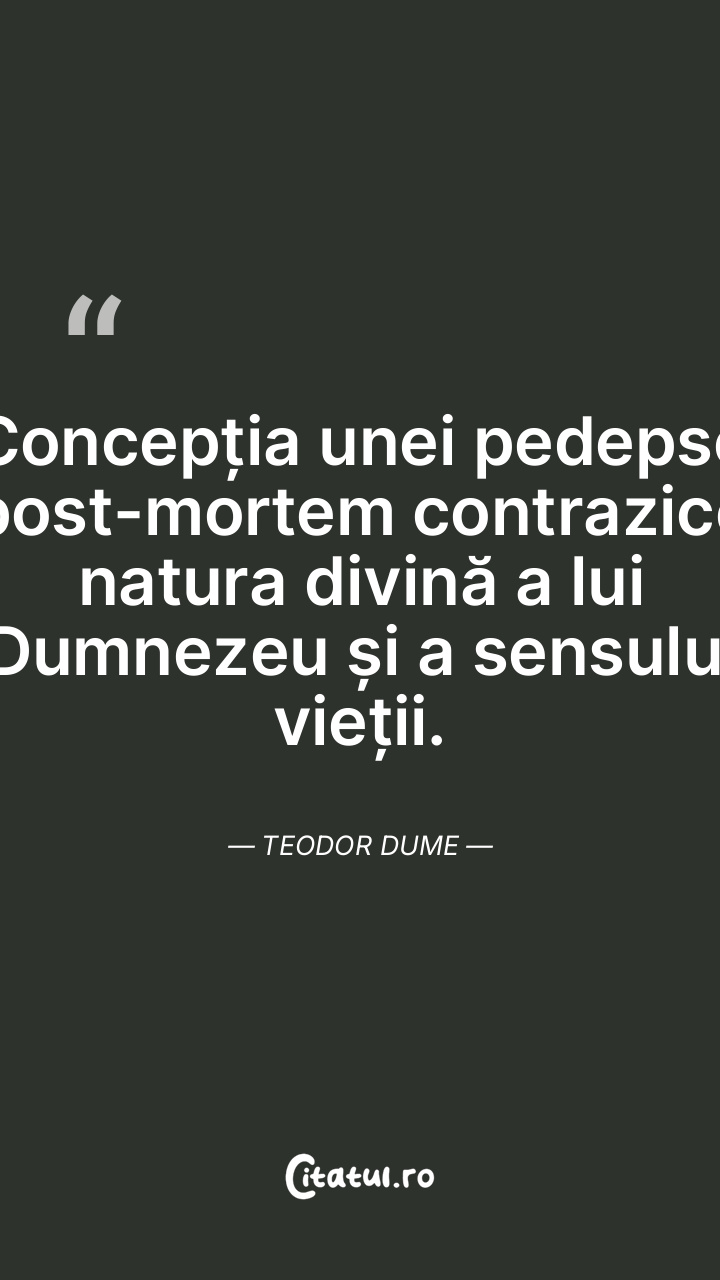 Concepția unei pedepse post-mortem contrazice natura divină a lui Dumnezeu și a sensului vieții. Teodor Dume