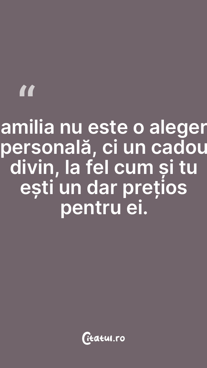 Familia nu este o alegere personală, ci un cadou divin, la fel cum și tu ești un dar prețios pentru ei.
