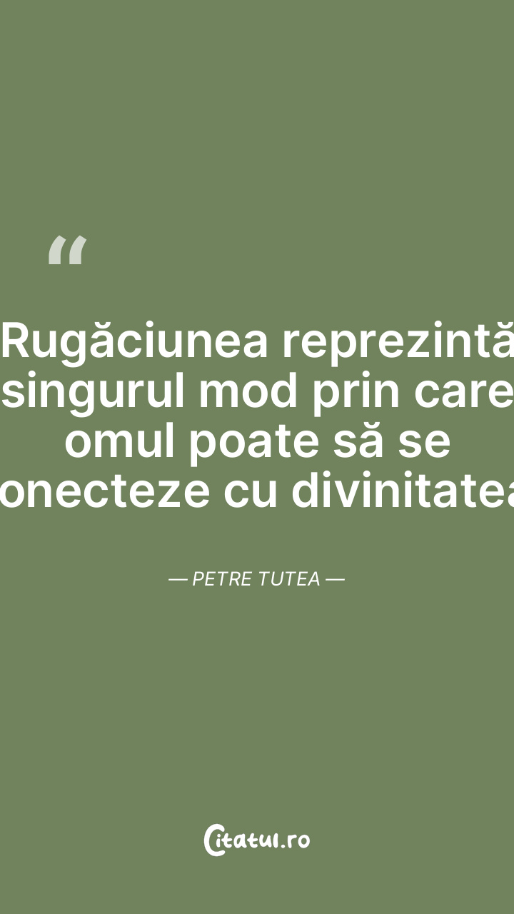 Rugăciunea reprezintă singurul mod prin care omul poate să se conecteze cu divinitatea. Petre Tutea