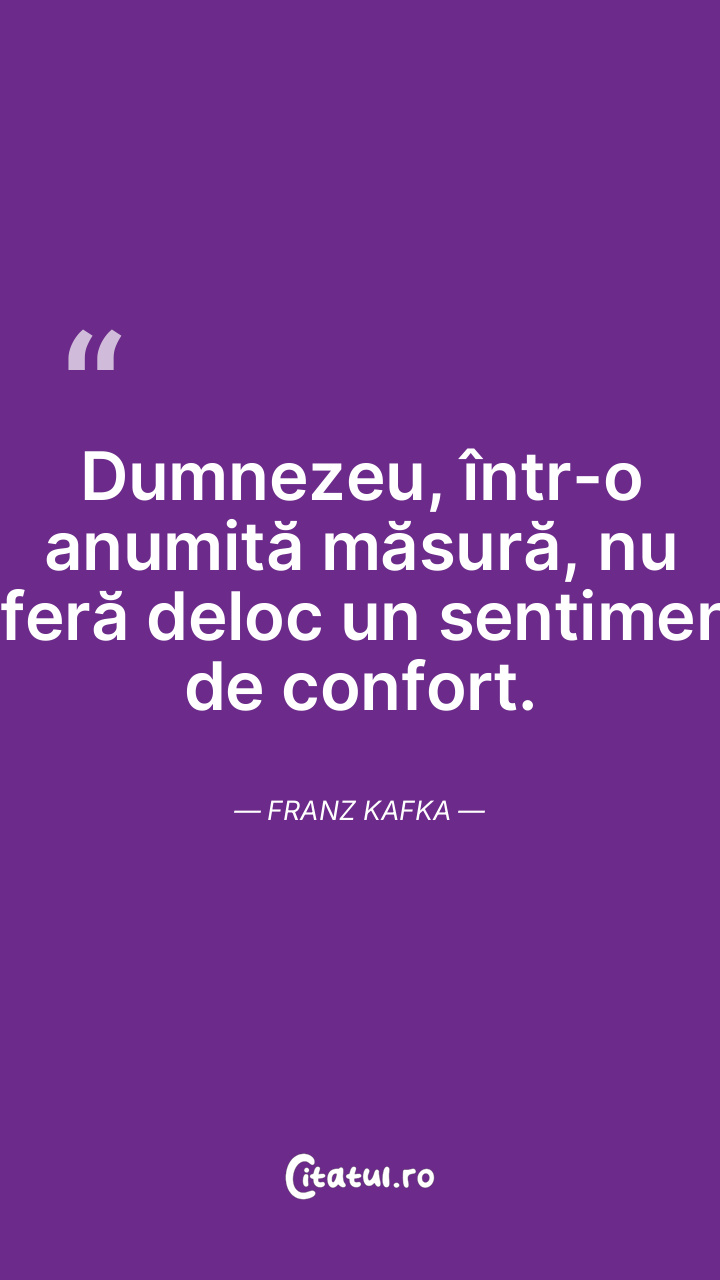 Dumnezeu, într-o anumită măsură, nu oferă deloc un sentiment de confort. Franz Kafka