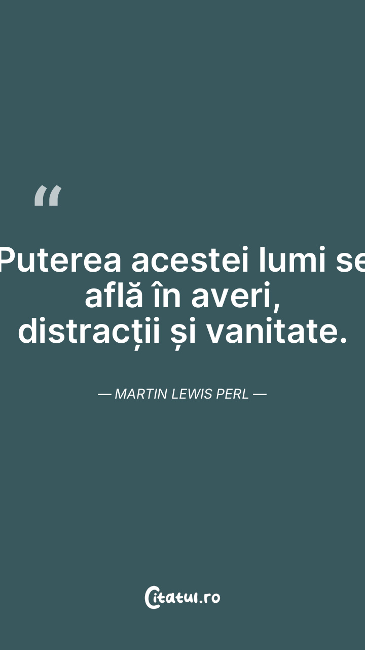 Puterea acestei lumi se află în averi, distracții și vanitate. Martin Lewis Perl