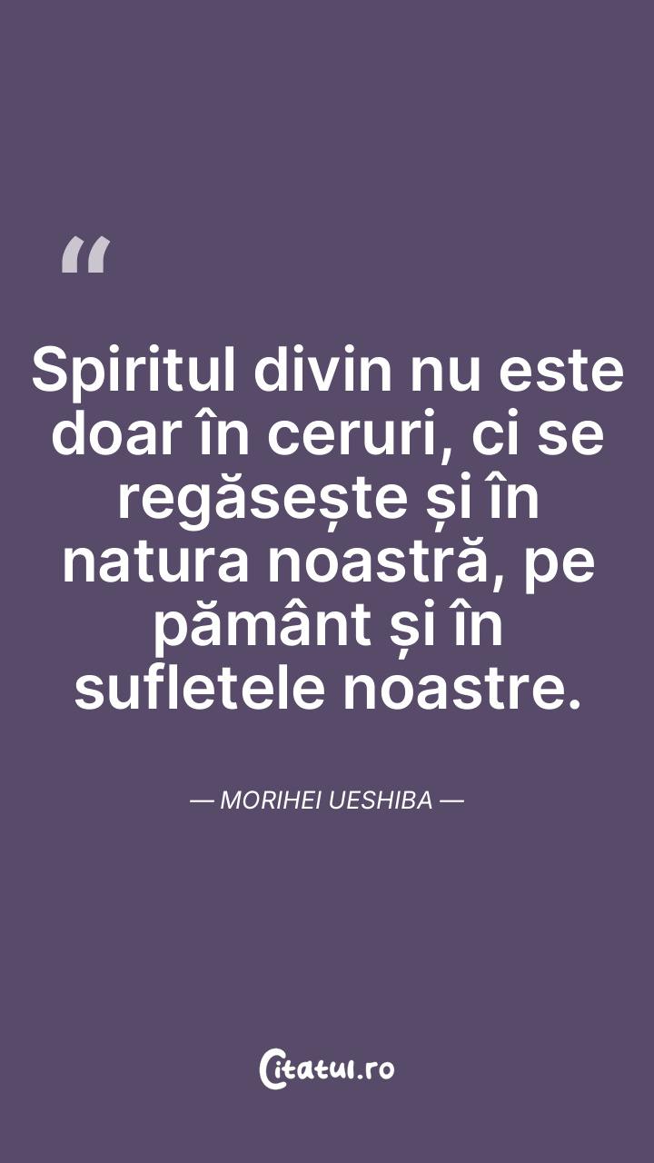 Spiritul divin nu este doar în ceruri, ci se regăsește și în natura noastră, pe pământ și în sufletele noastre. Morihei Ueshiba