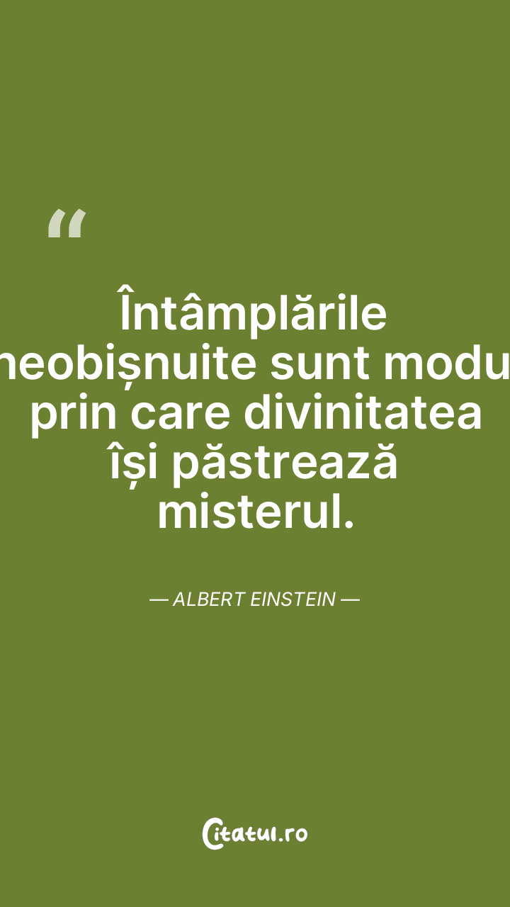 Întâmplările neobișnuite sunt modul prin care divinitatea își păstrează misterul. Albert Einstein