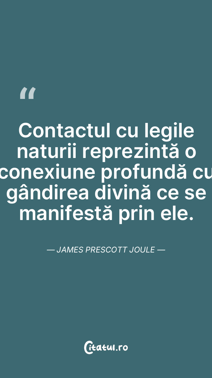 Contactul cu legile naturii reprezintă o conexiune profundă cu gândirea divină ce se manifestă prin ele. James Prescott Joule