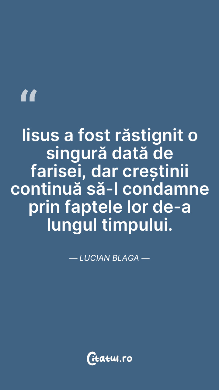 Iisus a fost răstignit o singură dată de farisei, dar creștinii continuă să-l condamne prin faptele lor de-a lungul timpului. Lucian Blaga