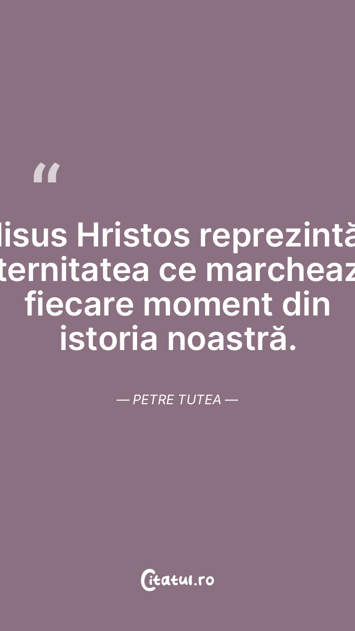 Iisus Hristos reprezintă eternitatea ce marchează fiecare moment din istoria noastră. Petre Tutea