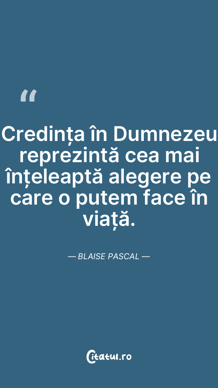 Credința în Dumnezeu reprezintă cea mai înțeleaptă alegere pe care o putem face în viață. Blaise Pascal