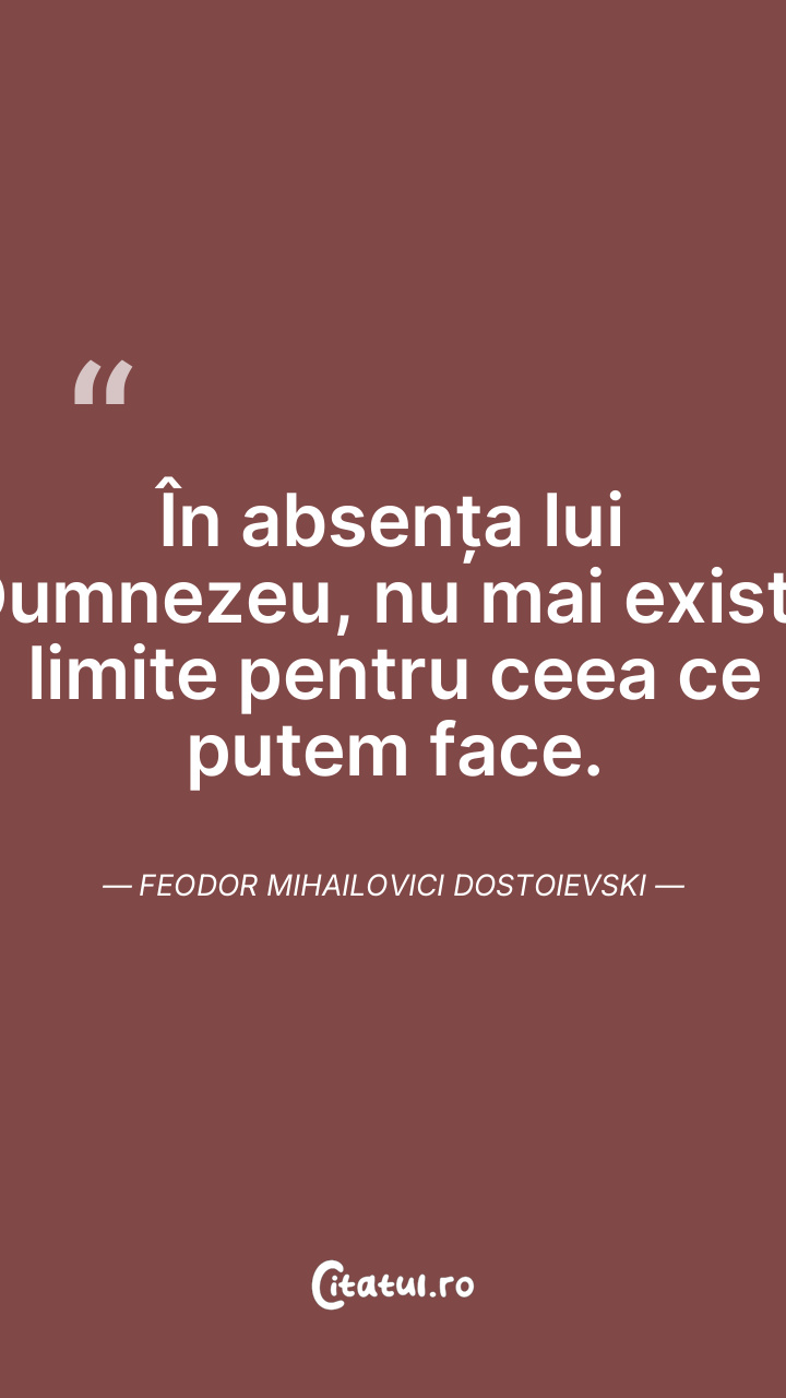 În absența lui Dumnezeu, nu mai există limite pentru ceea ce putem face. Feodor Mihailovici Dostoievski