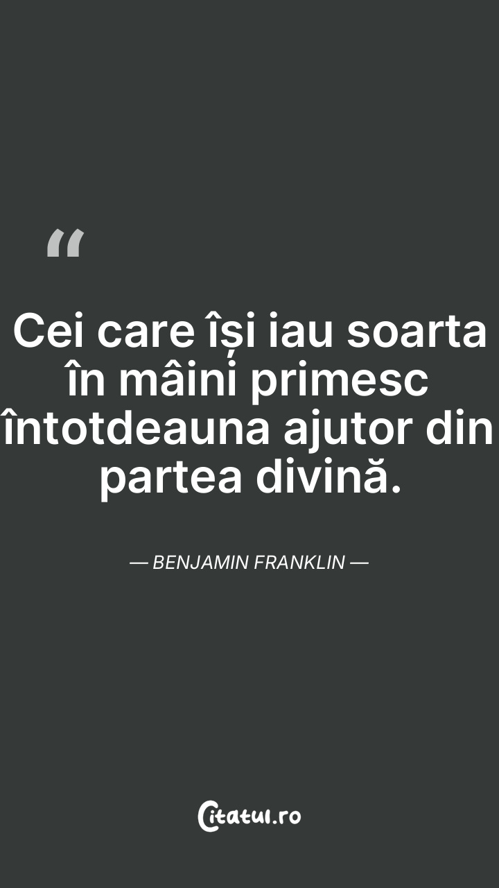 Cei care își iau soarta în mâini primesc întotdeauna ajutor din partea divină. Benjamin Franklin