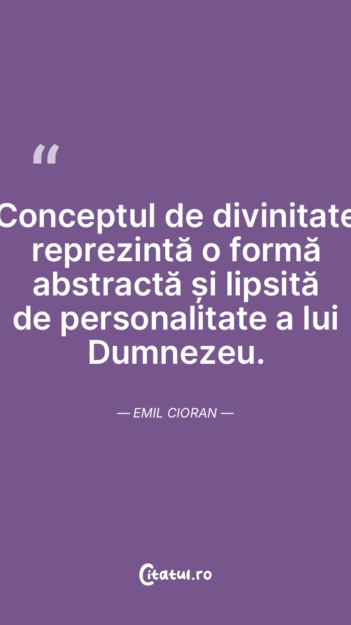 Conceptul de divinitate reprezintă o formă abstractă și lipsită de personalitate a lui Dumnezeu. Emil Cioran