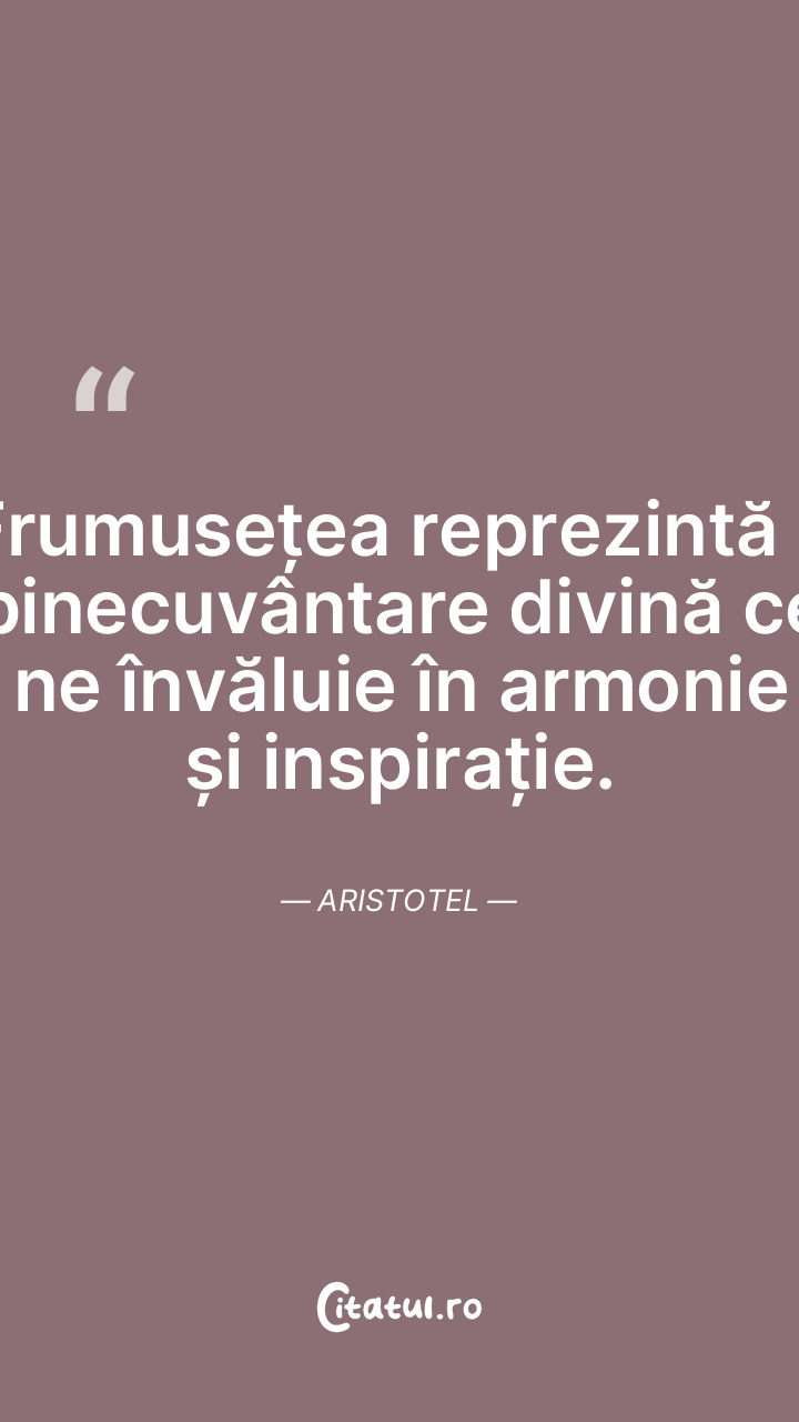 Frumusețea reprezintă o binecuvântare divină ce ne învăluie în armonie și inspirație. Aristotel