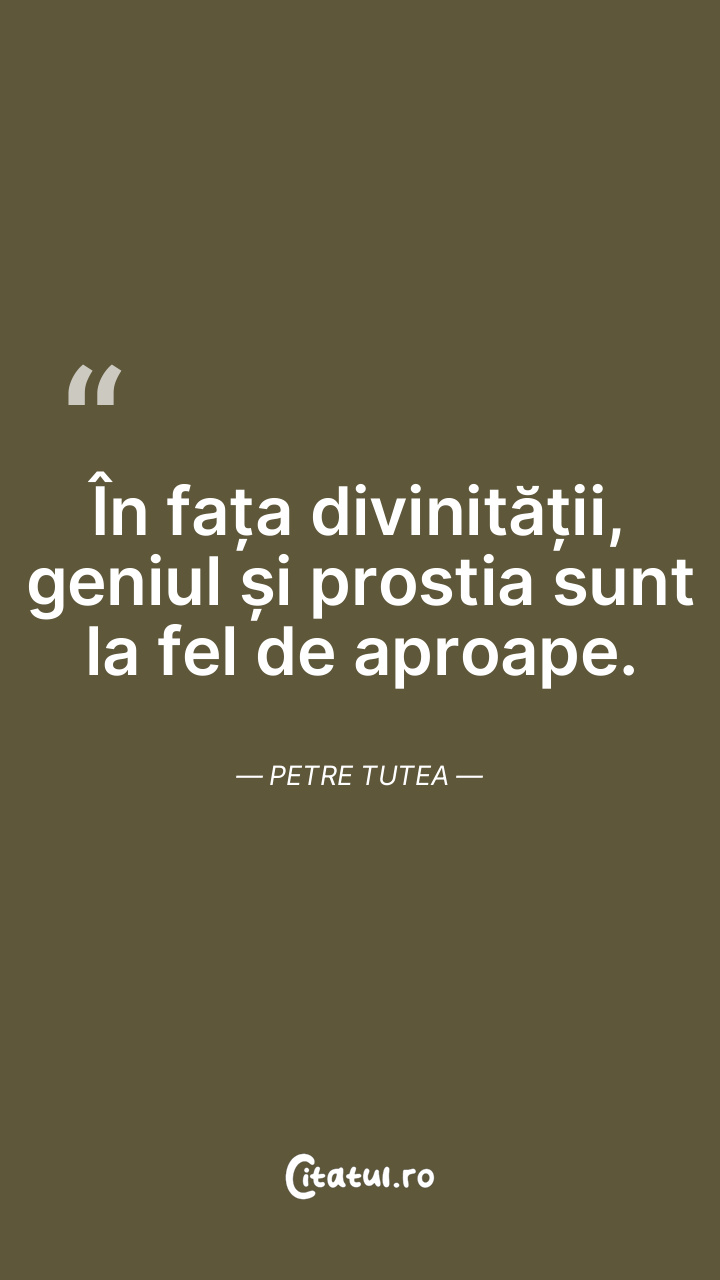 În fața divinității, geniul și prostia sunt la fel de aproape. Petre Tutea