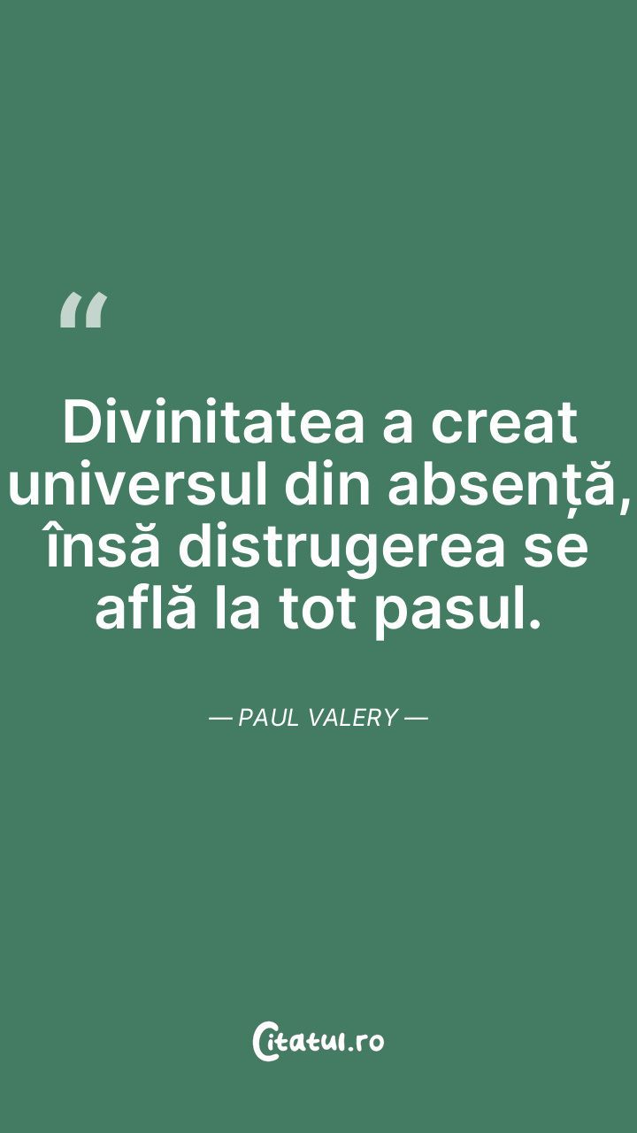 Divinitatea a creat universul din absență, însă distrugerea se află la tot pasul. Paul Valery