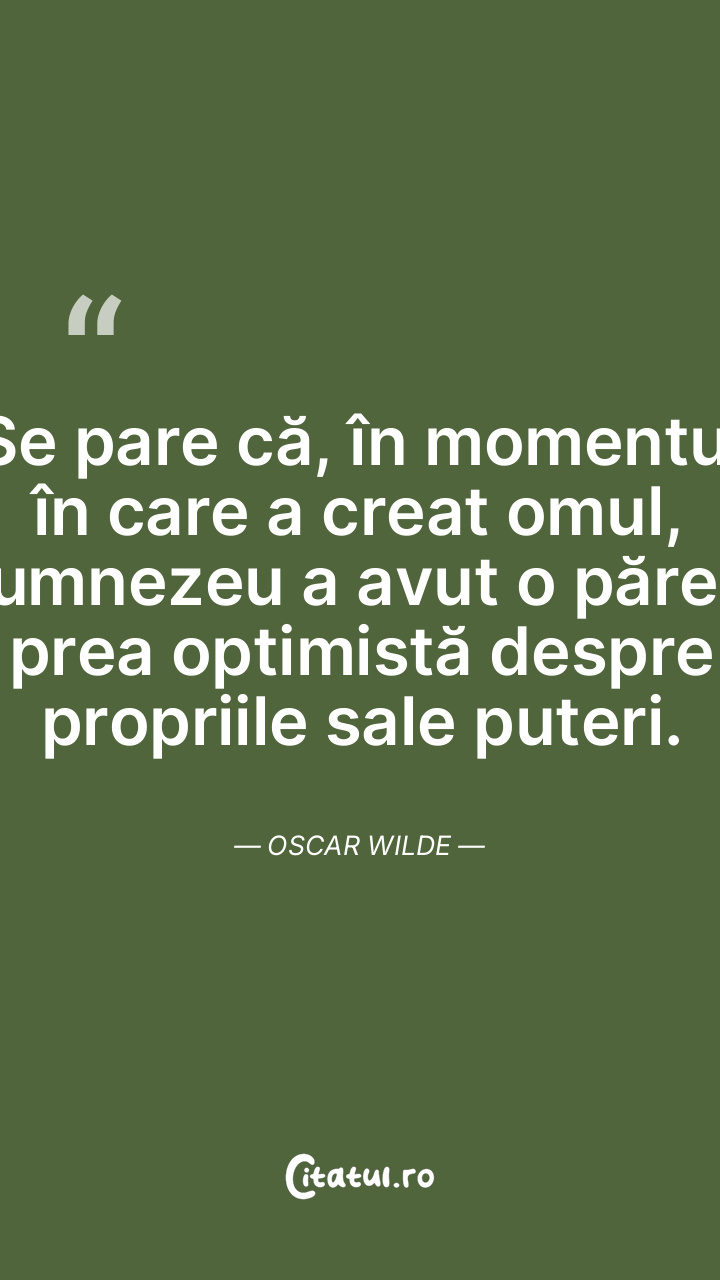 Se pare că, în momentul în care a creat omul, Dumnezeu a avut o părere prea optimistă despre propriile sale puteri. Oscar Wilde