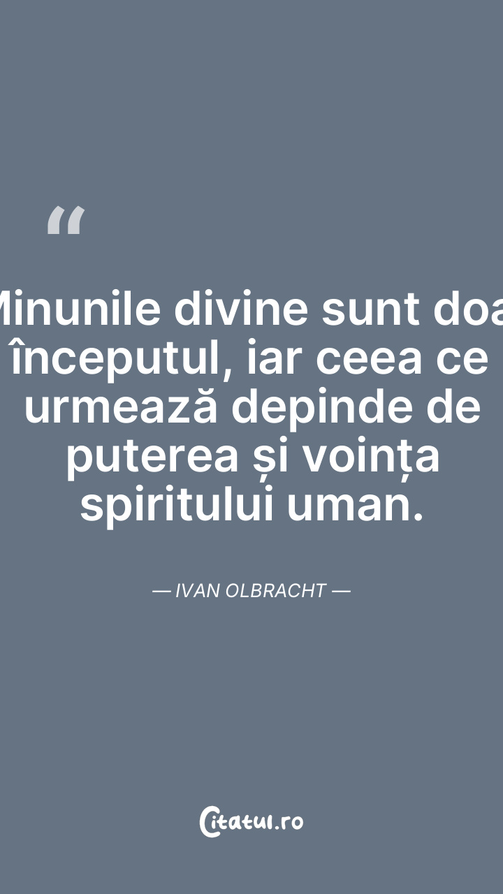 Minunile divine sunt doar începutul, iar ceea ce urmează depinde de puterea și voința spiritului uman. Ivan Olbracht