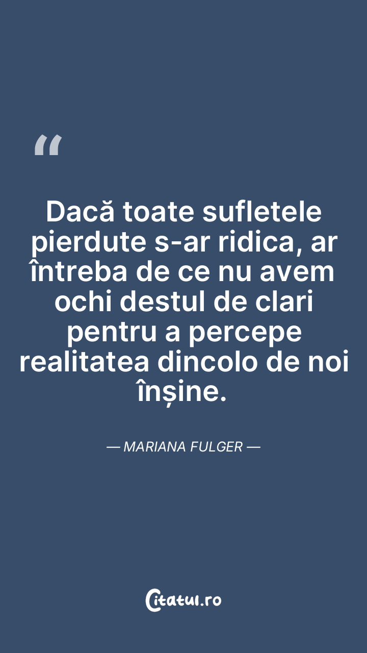 Dacă toate sufletele pierdute s-ar ridica, ar întreba de ce nu avem ochi destul de clari pentru a percepe realitatea dincolo de noi înșine. Mariana Fulger
