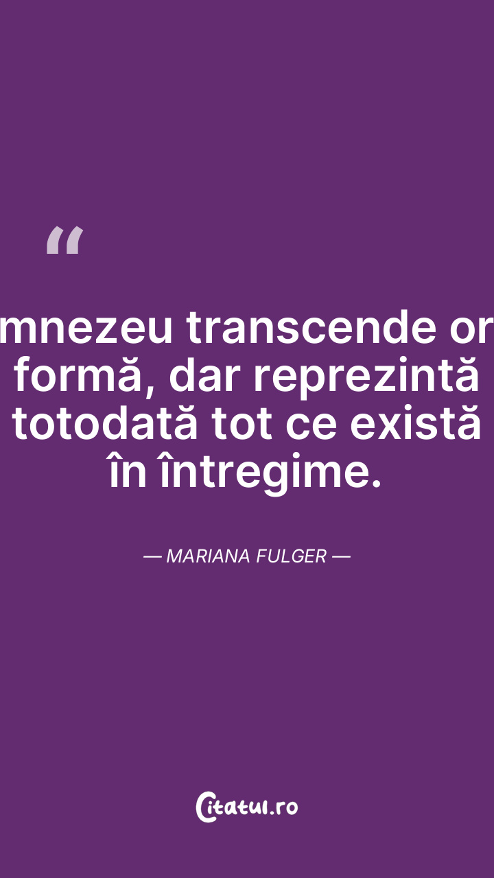 Dumnezeu transcende orice formă, dar reprezintă totodată tot ce există în întregime. Mariana Fulger