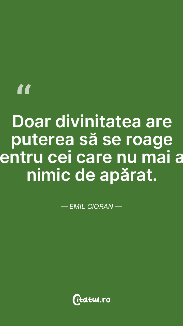 Doar divinitatea are puterea să se roage pentru cei care nu mai au nimic de apărat. Emil Cioran