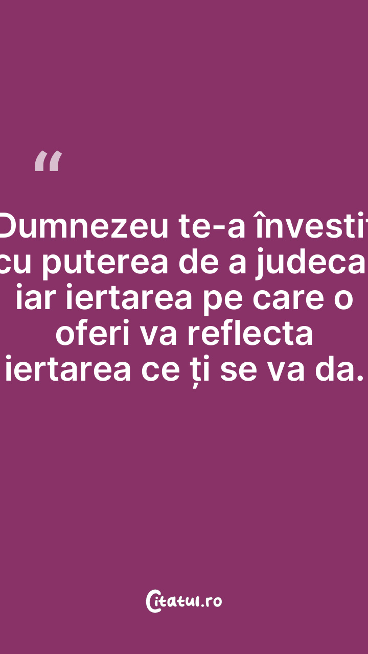 Dumnezeu te-a învestit cu puterea de a judeca, iar iertarea pe care o oferi va reflecta iertarea ce ți se va da.