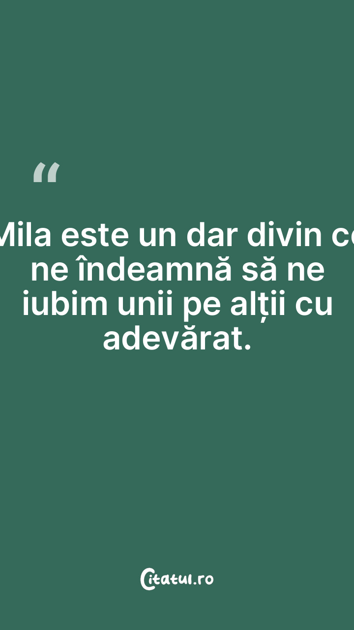 Mila este un dar divin ce ne îndeamnă să ne iubim unii pe alții cu adevărat.