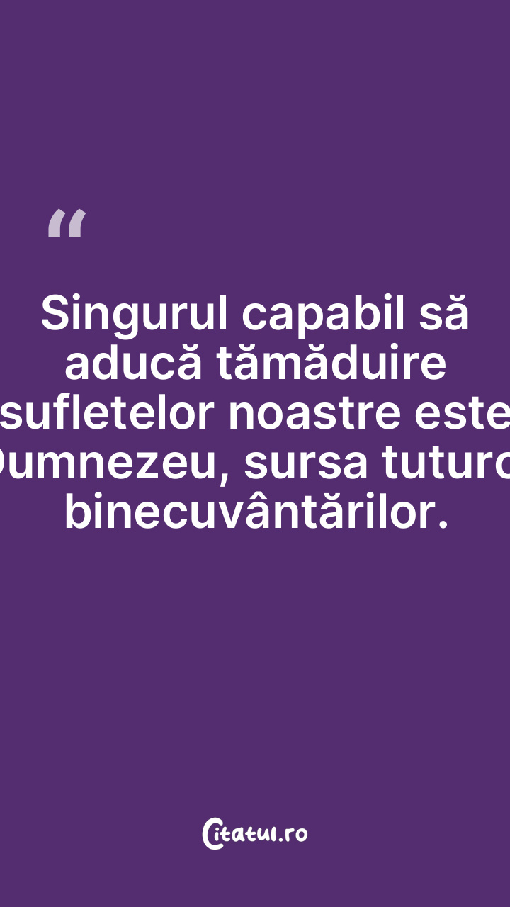 Singurul capabil să aducă tămăduire sufletelor noastre este Dumnezeu, sursa tuturor binecuvântărilor.
