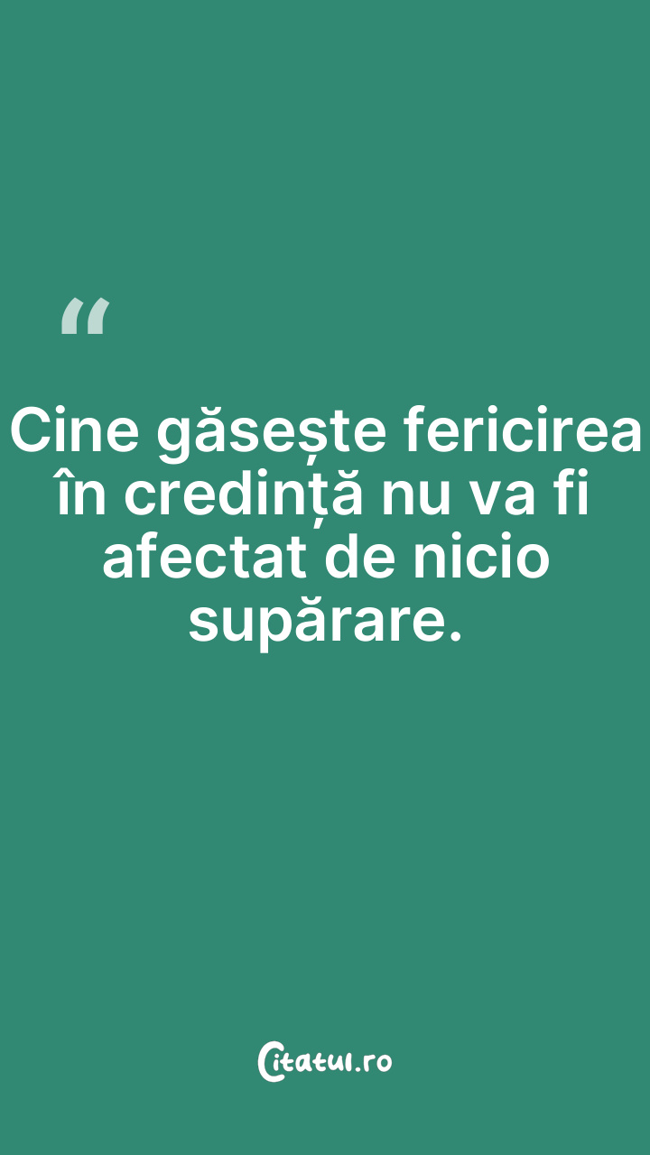 Cine găsește fericirea în credință nu va fi afectat de nicio supărare.