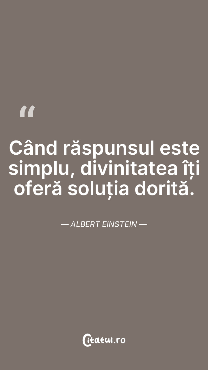 Când răspunsul este simplu, divinitatea îți oferă soluția dorită. Albert Einstein