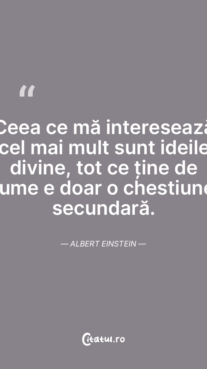 Ceea ce mă interesează cel mai mult sunt ideile divine, tot ce ține de lume e doar o chestiune secundară. Albert Einstein