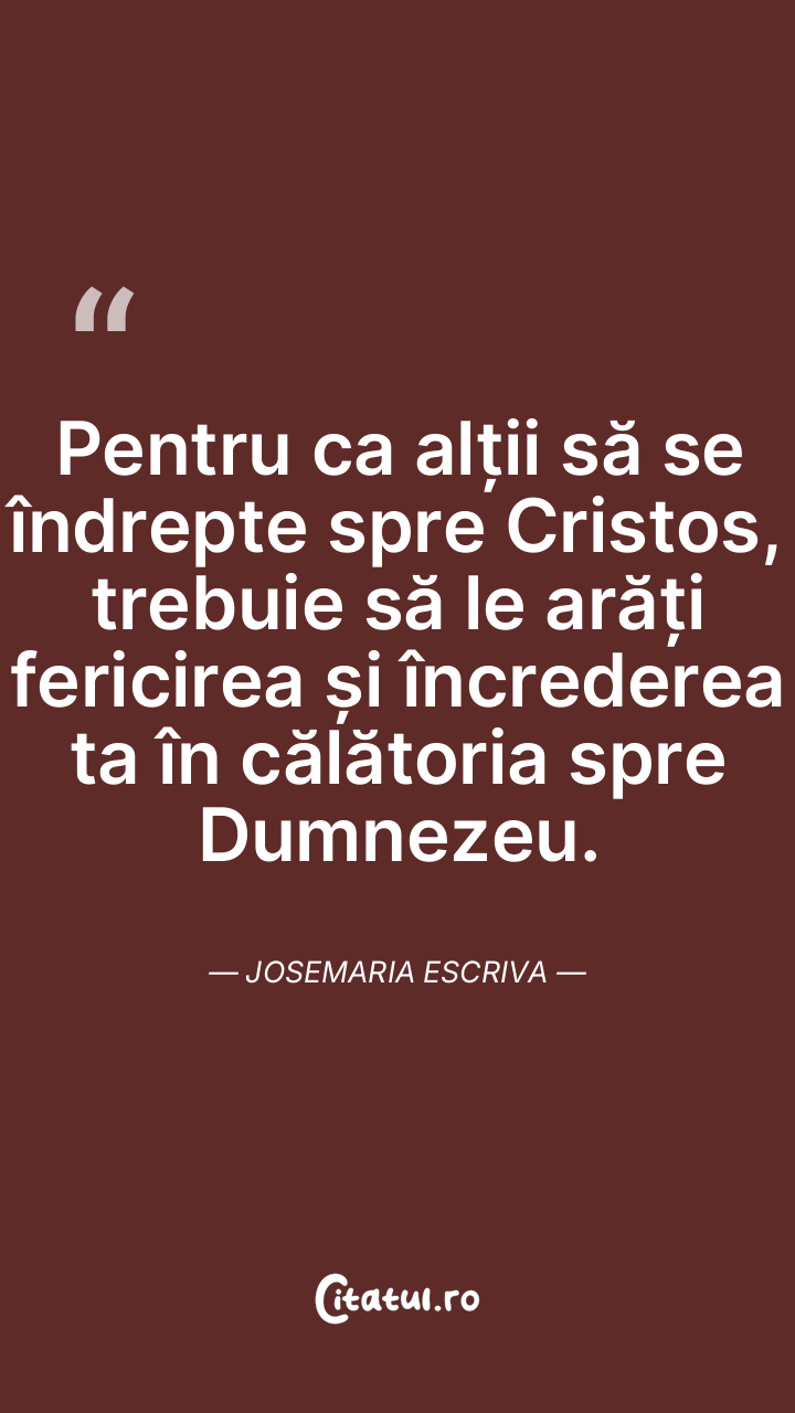 Pentru ca alții să se îndrepte spre Cristos, trebuie să le arăți fericirea și încrederea ta în călătoria spre Dumnezeu. Josemaria Escriva