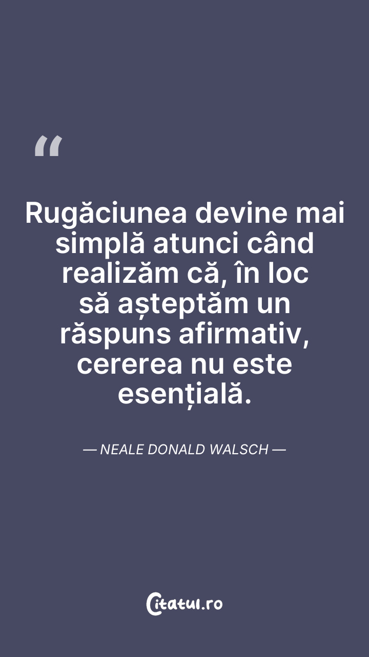 Rugăciunea devine mai simplă atunci când realizăm că, în loc să așteptăm un răspuns afirmativ, cererea nu este esențială. Neale Donald Walsch