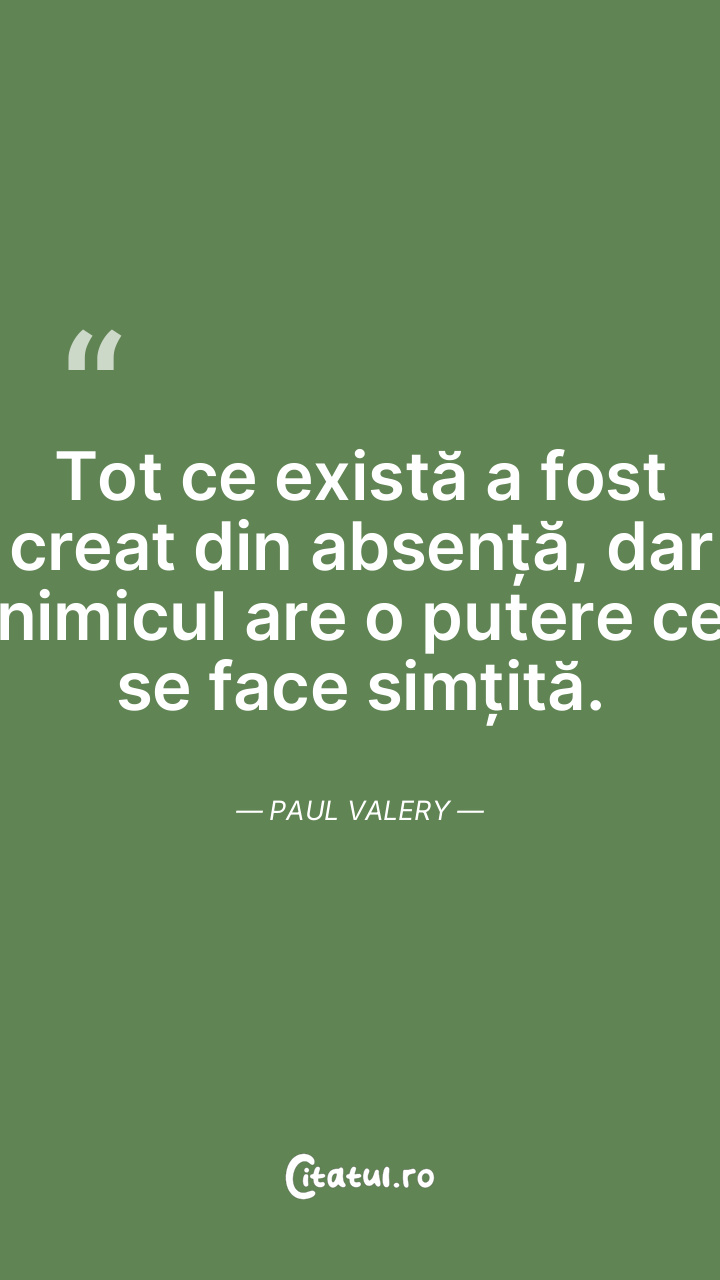 Tot ce există a fost creat din absență, dar nimicul are o putere ce se face simțită. Paul Valery