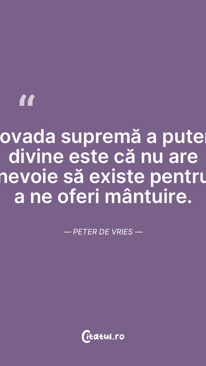 Dovada supremă a puterii divine este că nu are nevoie să existe pentru a ne oferi mântuire. Peter De Vries