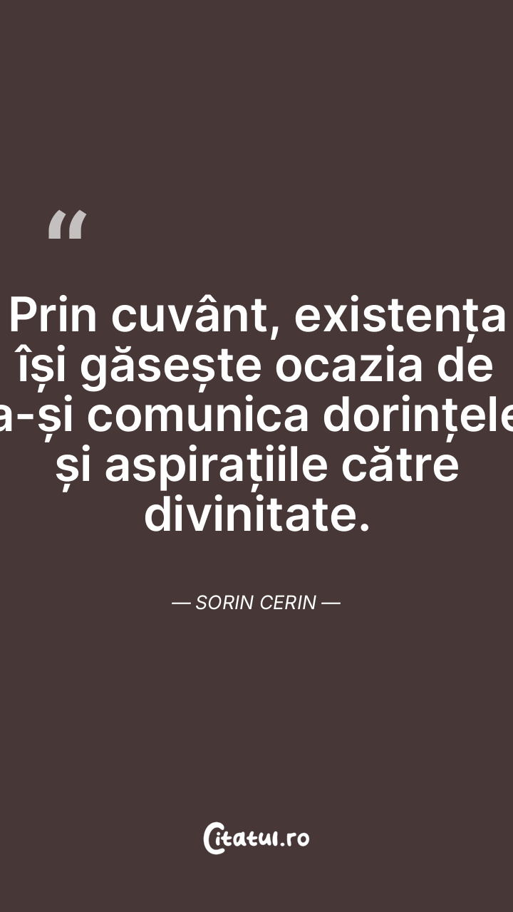 Prin cuvânt, existența își găsește ocazia de a-și comunica dorințele și aspirațiile către divinitate. Sorin Cerin