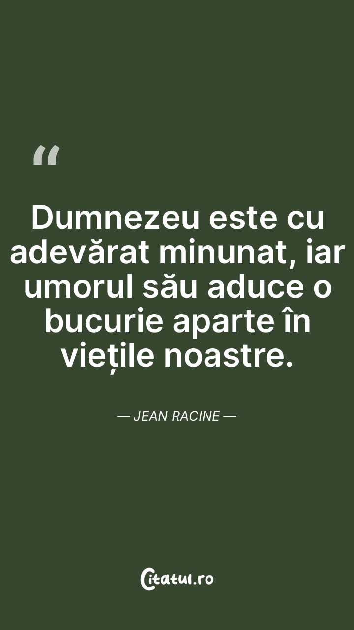 Dumnezeu este cu adevărat minunat, iar umorul său aduce o bucurie aparte în viețile noastre. Jean Racine