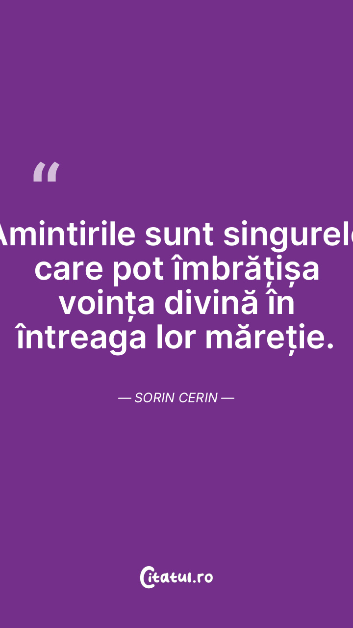 Amintirile sunt singurele care pot îmbrățișa voința divină în întreaga lor măreție. Sorin Cerin