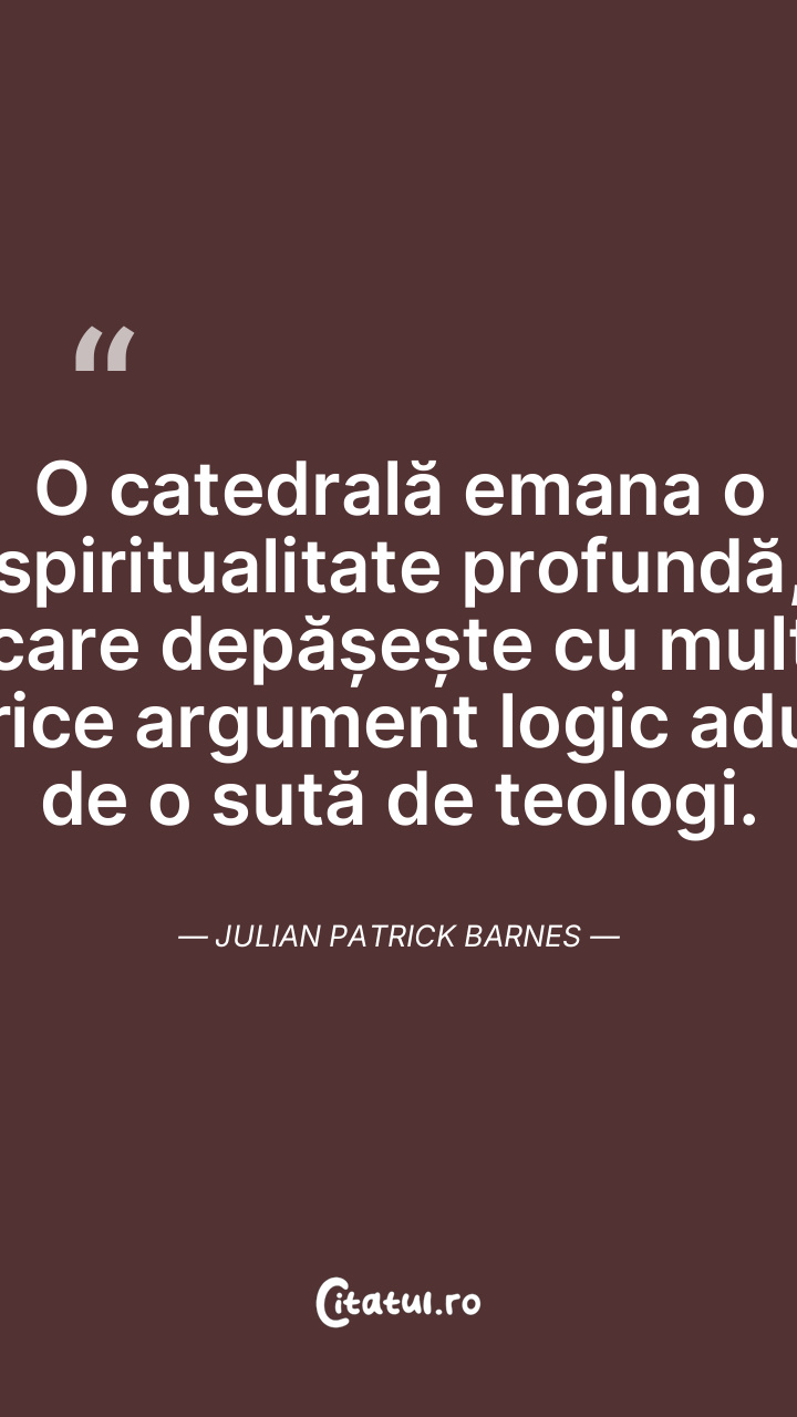 O catedrală emana o spiritualitate profundă, care depășește cu mult orice argument logic adus de o sută de teologi. Julian Patrick Barnes