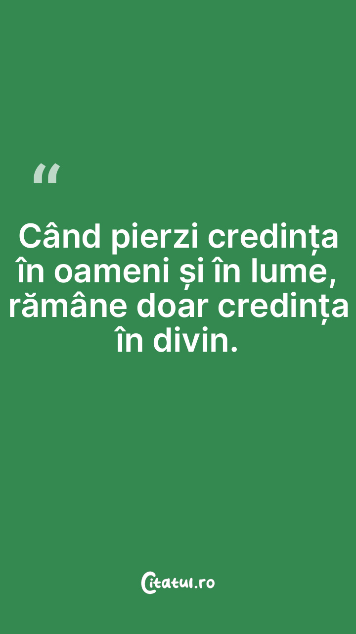Când pierzi credința în oameni și în lume, rămâne doar credința în divin.