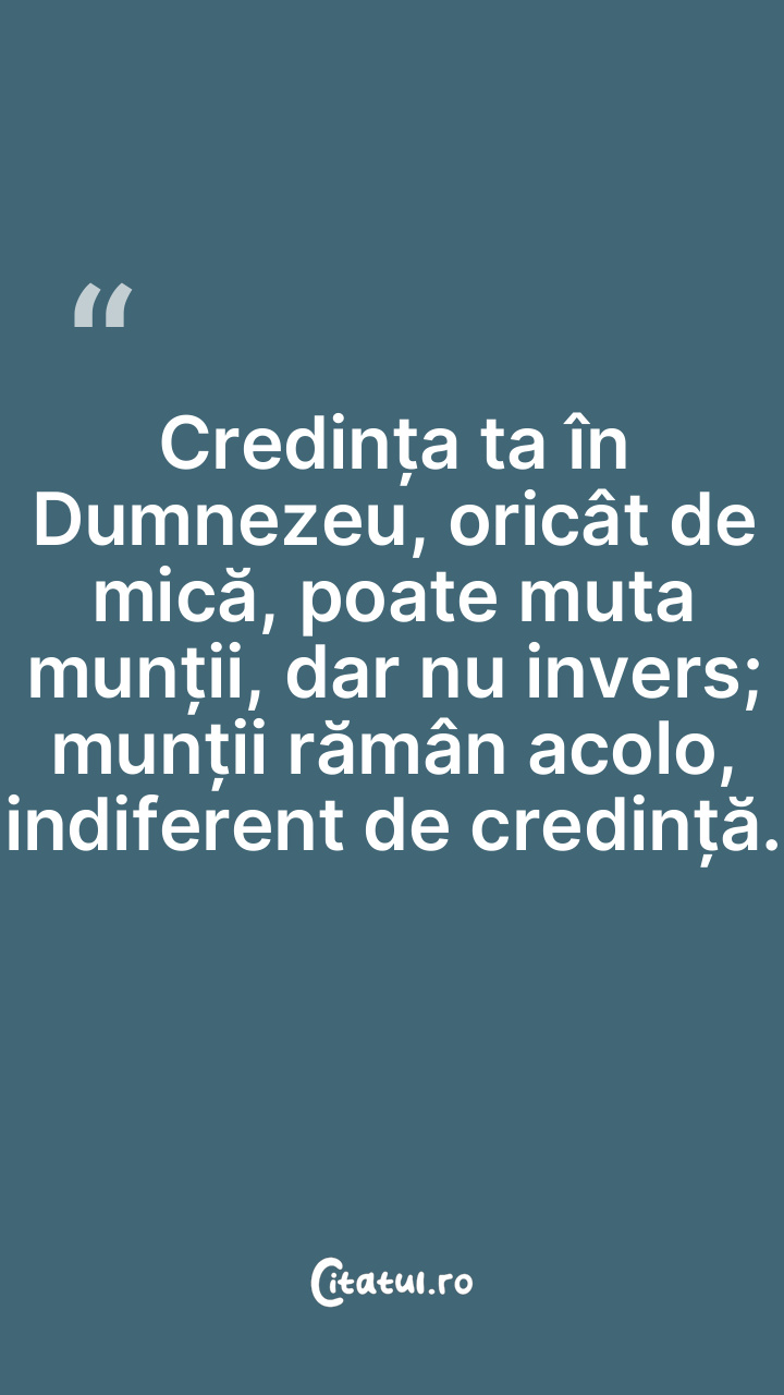Credința ta în Dumnezeu, oricât de mică, poate muta munții, dar nu invers; munții rămân acolo, indiferent de credință.