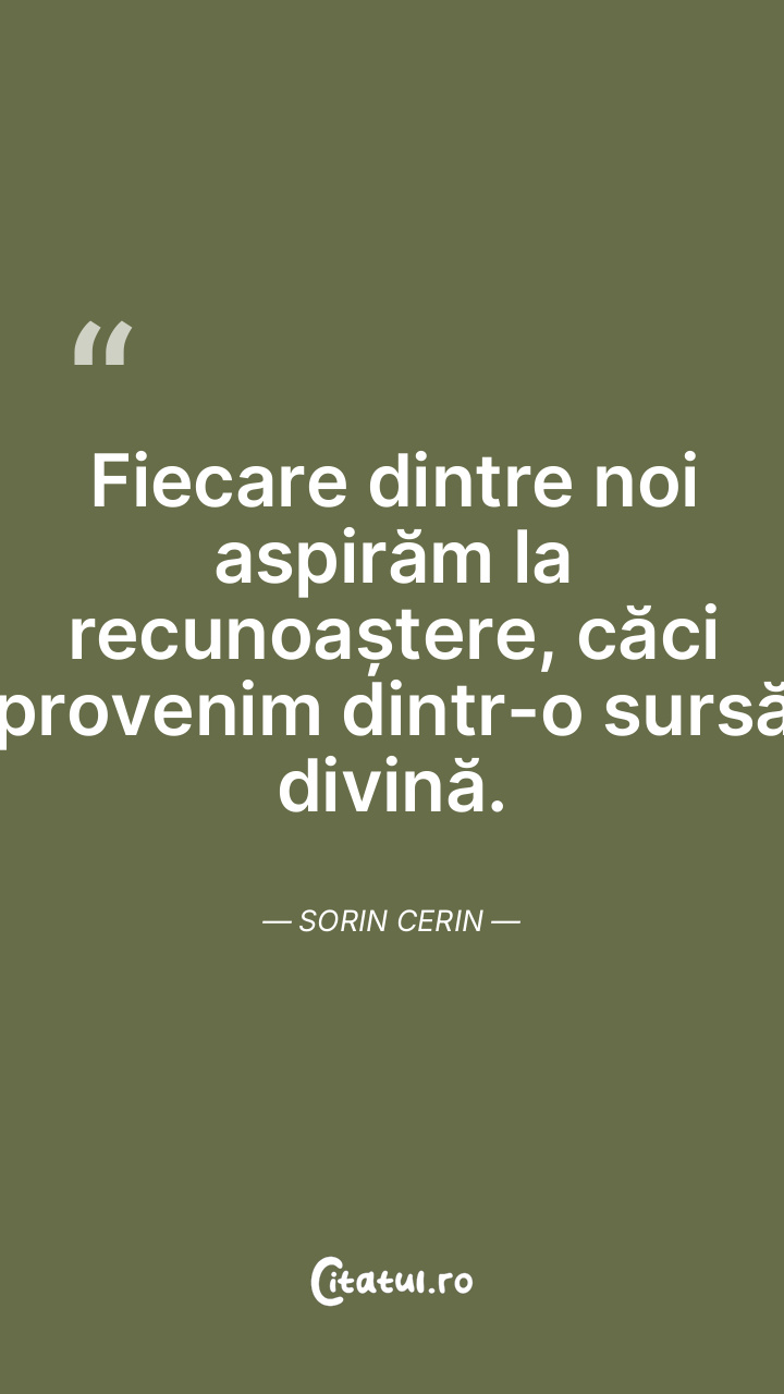 Fiecare dintre noi aspirăm la recunoaștere, căci provenim dintr-o sursă divină. Sorin Cerin