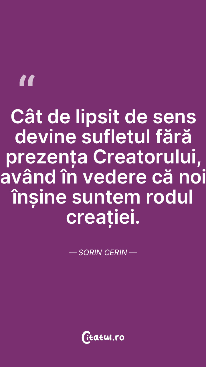 Cât de lipsit de sens devine sufletul fără prezența Creatorului, având în vedere că noi înșine suntem rodul creației. Sorin Cerin