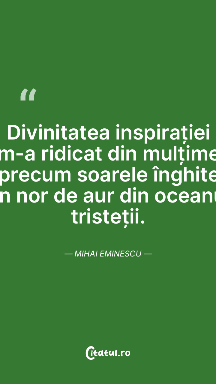 Divinitatea inspirației m-a ridicat din mulțime precum soarele înghite un nor de aur din oceanul tristeții. Mihai Eminescu