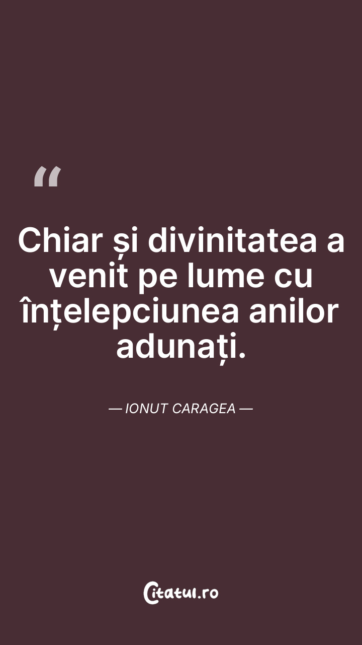 Chiar și divinitatea a venit pe lume cu înțelepciunea anilor adunați. Ionut Caragea