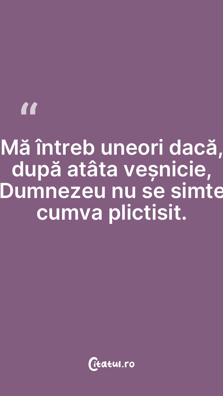 Mă întreb uneori dacă, după atâta veșnicie, Dumnezeu nu se simte cumva plictisit.