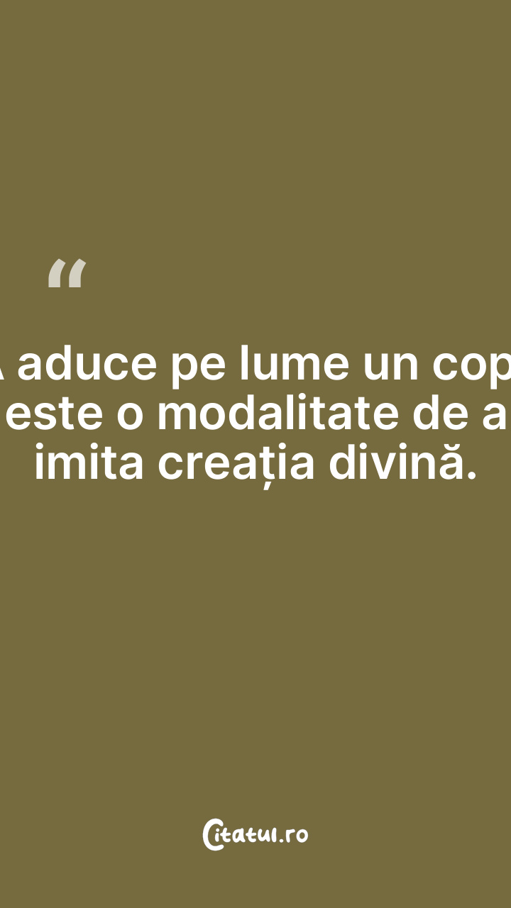A aduce pe lume un copil este o modalitate de a imita creația divină.