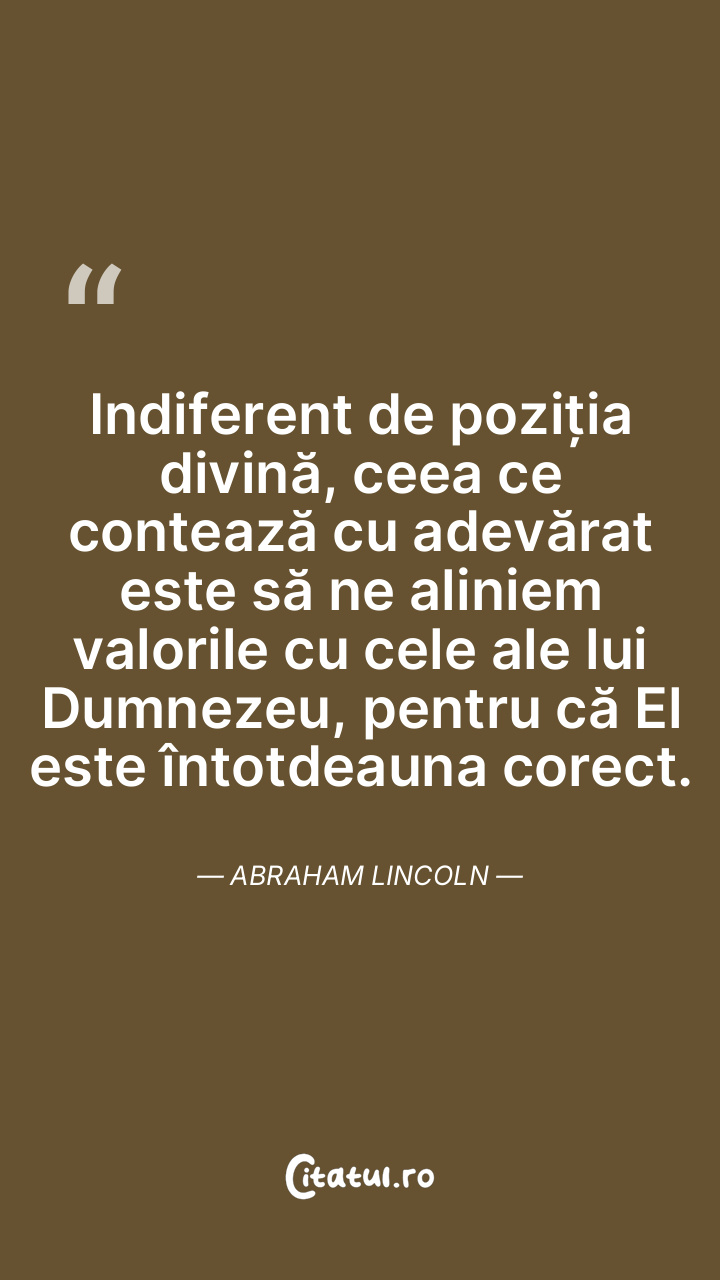 Indiferent de poziția divină, ceea ce contează cu adevărat este să ne aliniem valorile cu cele ale lui Dumnezeu, pentru că El este întotdeauna corect. Abraham Lincoln