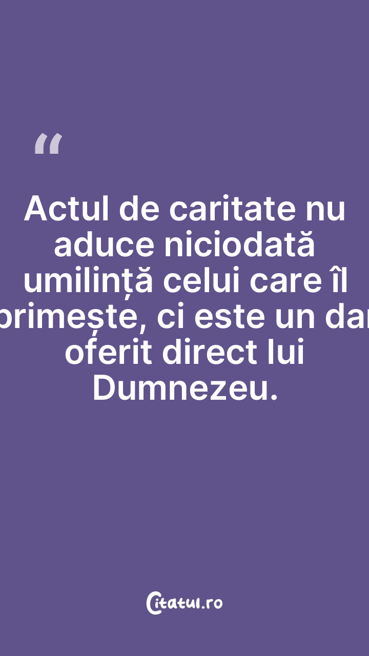 Actul de caritate nu aduce niciodată umilință celui care îl primește, ci este un dar oferit direct lui Dumnezeu.