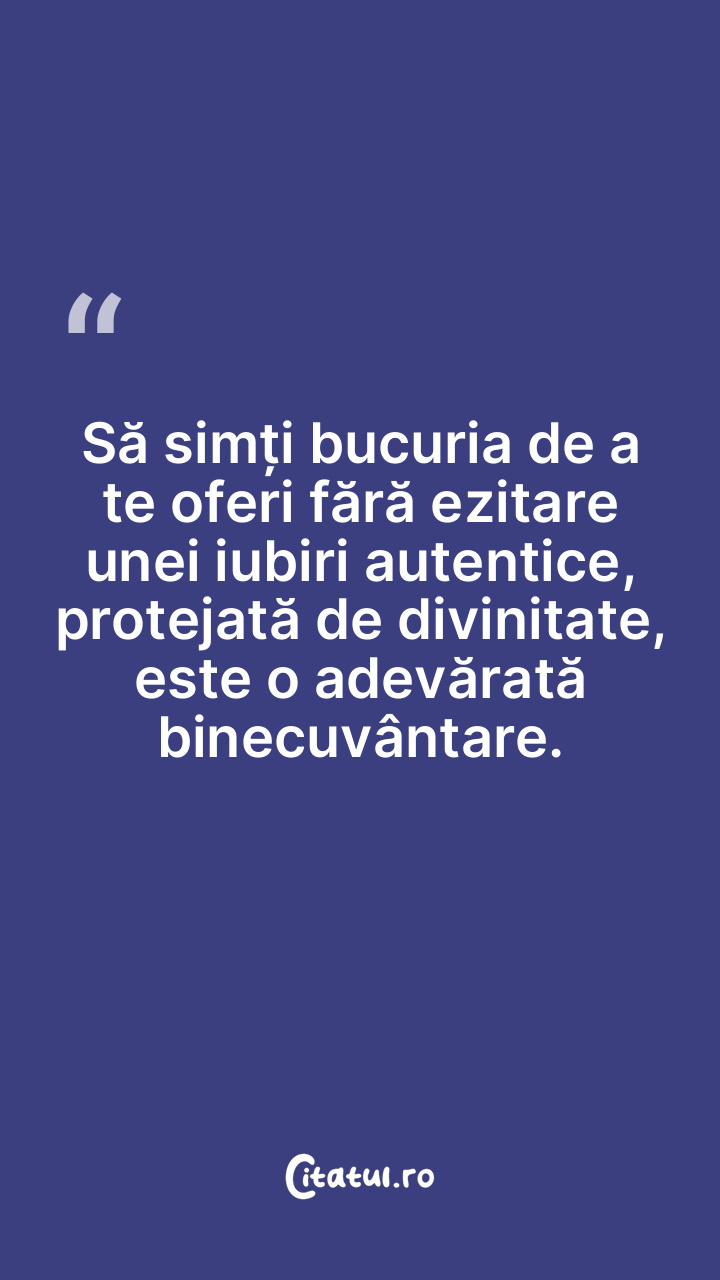 Să simți bucuria de a te oferi fără ezitare unei iubiri autentice, protejată de divinitate, este o adevărată binecuvântare.